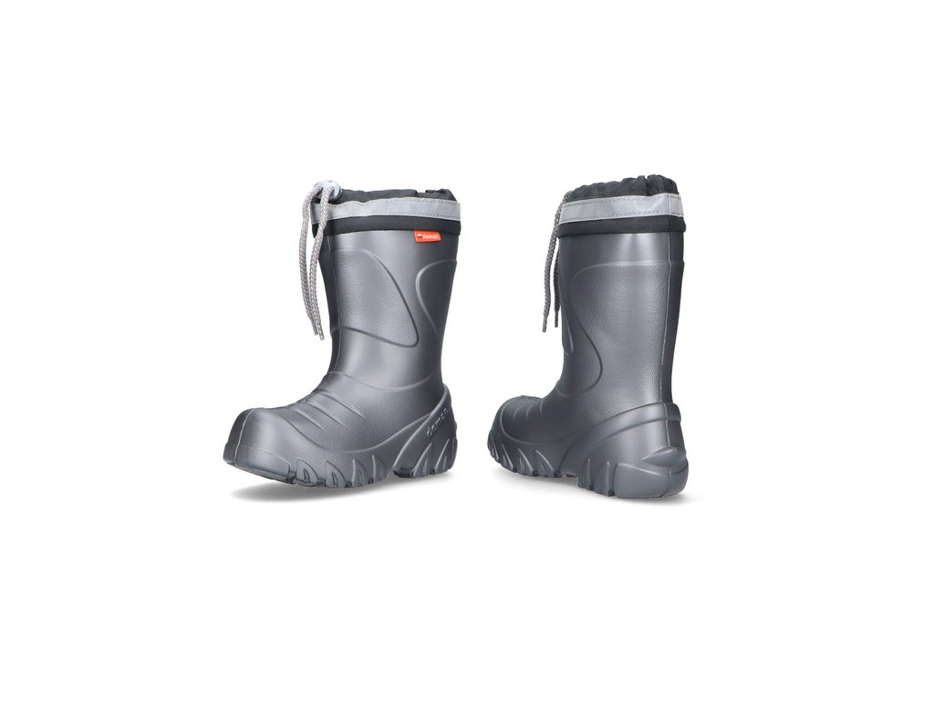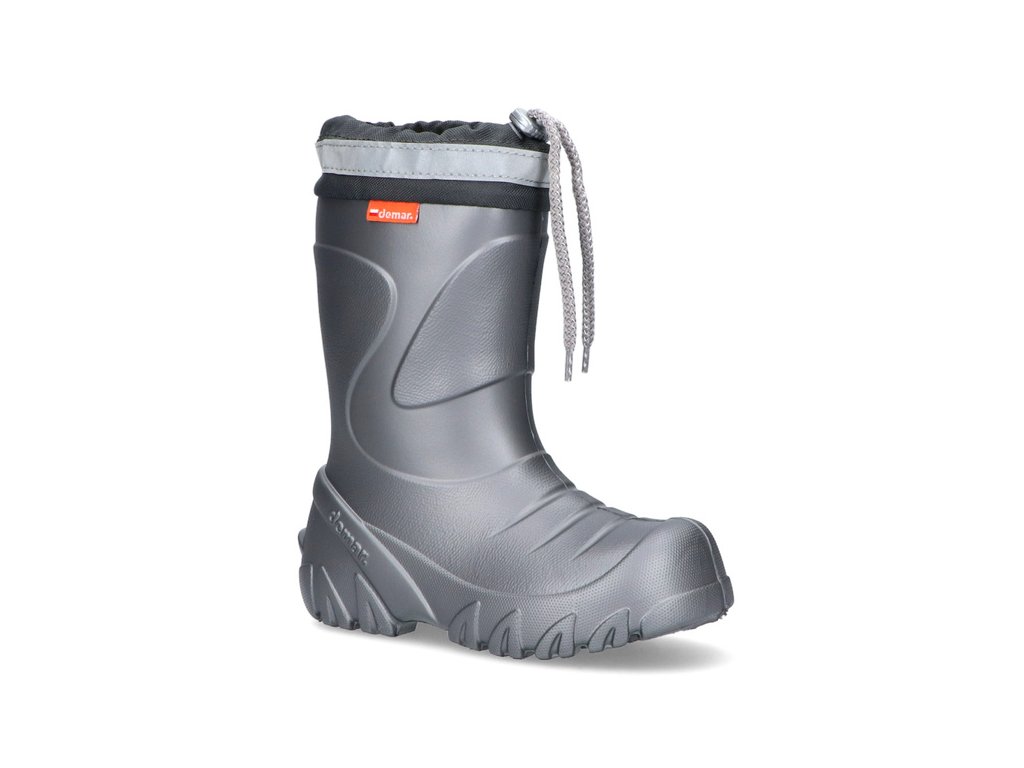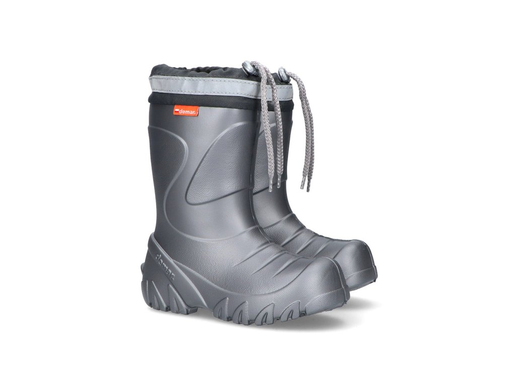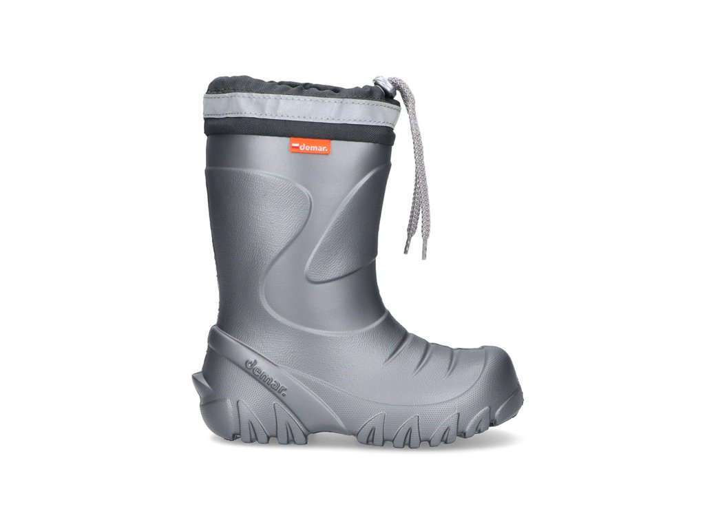 Dětské stahovací zateplené holínky Demar MAMMUT S jsou pravděpodobně nejlehčí a nejteplejší holínky na trhu. Barva gumáků je stříbrná. Holínky jsou vyrobeny z mrazuvzdorného kopolymeru EVA v kombinaci s vyjímatelnou vložkou z ovčí vlny, díky které jsou velice pohodlné a teplé. Na horní části je umístěn nástavec se stahovákem na tkaničku a reflexní prvek. Gumáky poskytují vynikající uživatelský komfort i při nízkých teplotách.