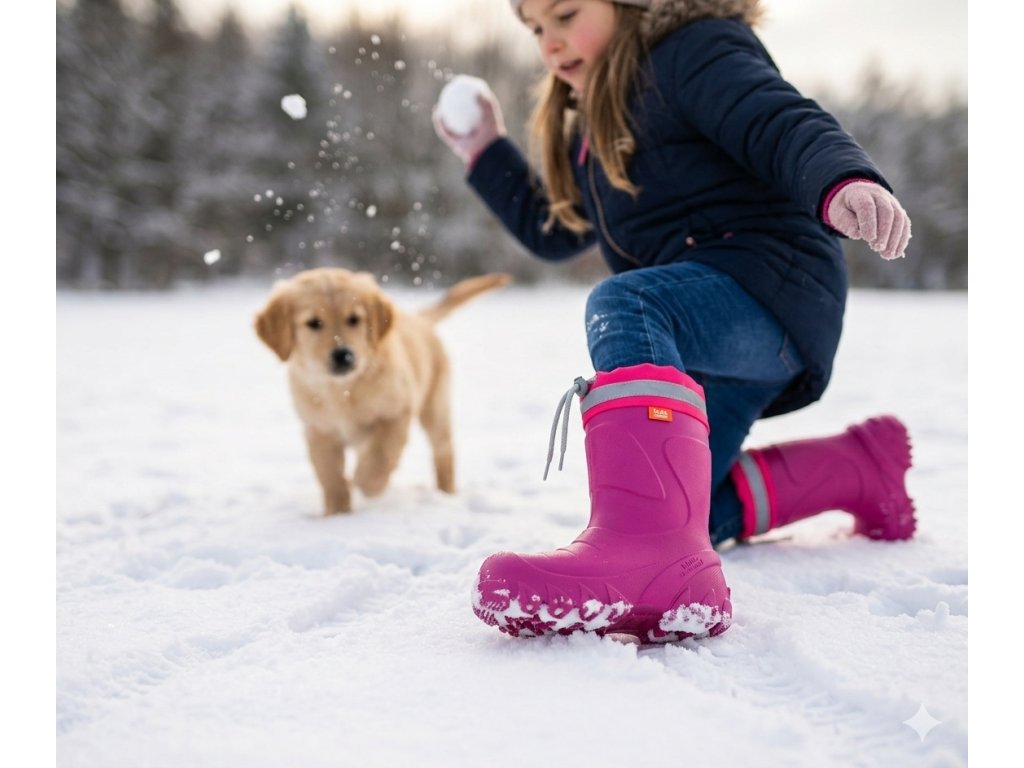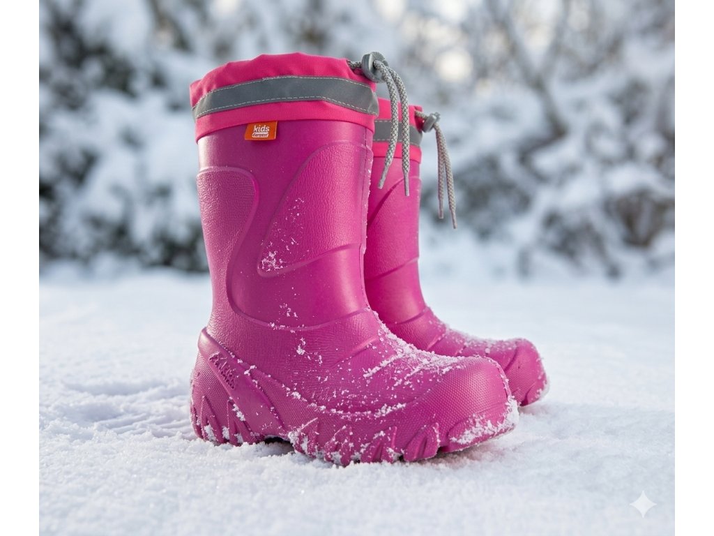 Dětské stahovací zateplené holínky Demar MAMMUT S jsou pravděpodobně nejlehčí a nejteplejší holínky na trhu. Barva gumáků je růžová. Holínky jsou vyrobeny z mrazuvzdorného kopolymeru EVA v kombinaci s vyjímatelnou vložkou z ovčí vlny, díky které jsou velice pohodlné a teplé. Na horní části je umístěn nástavec se stahovákem na tkaničku a reflexní prvek. Gumáky poskytují vynikající uživatelský komfort i při nízkých teplotách.